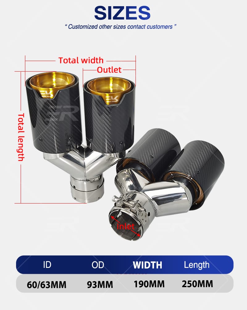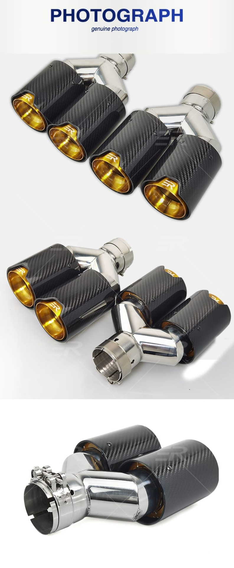 1 pçs er ponta de escape de fibra carbono real ouro aço inoxidável acessórios do carro dupla saída silenciador tubo carro decorativo para bmw modificar