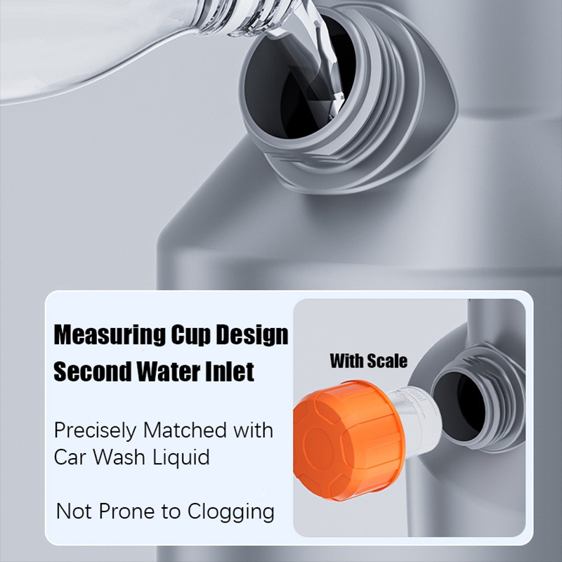 5.Recursos avançados de segurança: Para garantir uma experiência de lavagem de carros sem preocupações, este pulverizador de espuma para carro foi projetado com uma válvula de alívio de pressão.Pressione com segurança o botão da válvula para eliminar o risco de ruptura da garrafa.Libere totalmente a pressão antes de usar, o design é seguro e confiável.