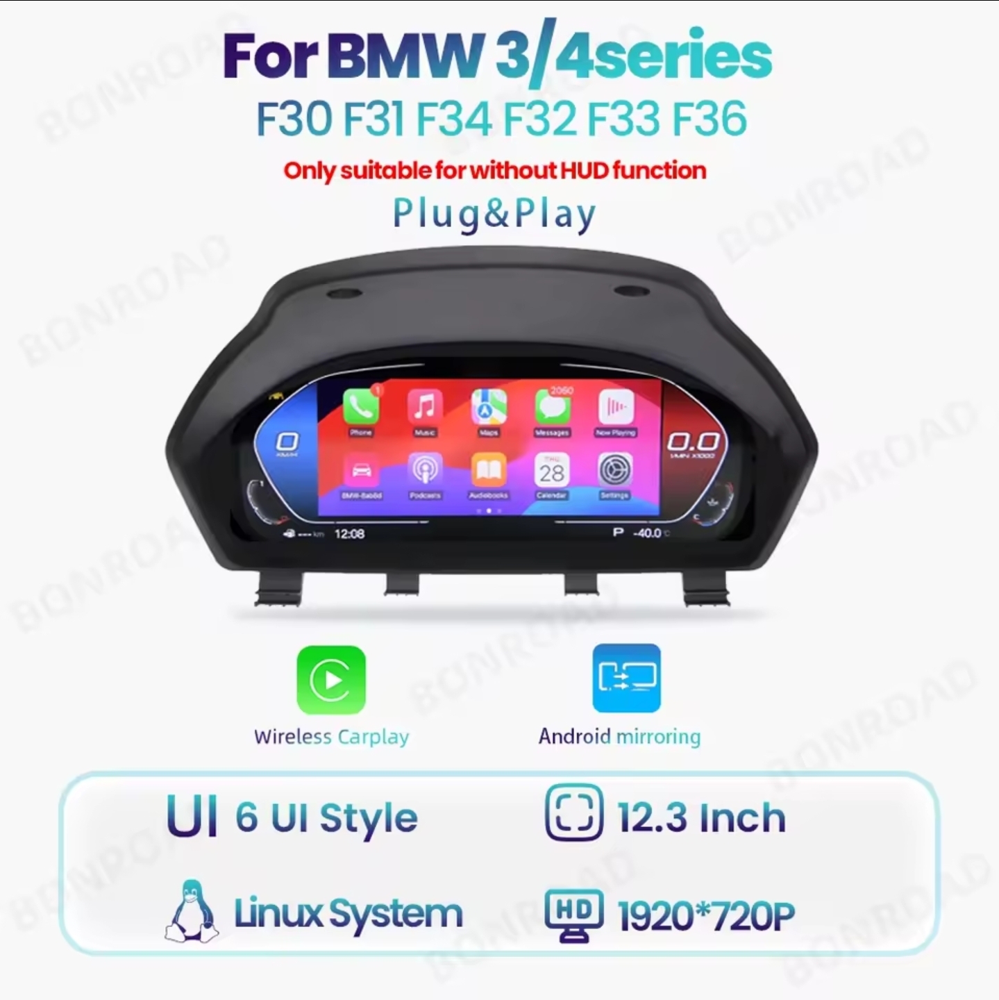 Auto Painel de Painel LCD para BMW, Display Digital Cluster Instrument, 12.3, Série 4, F30, F31, GT-F34, F32, F33, F36